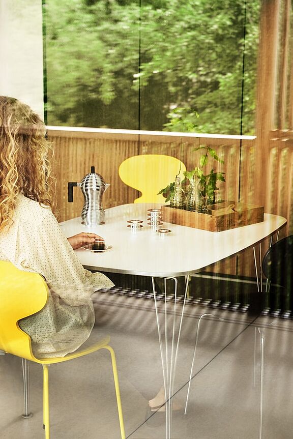 WeiterlesenEinen Tisch für vier bis sechs Personen präsentiert Fritz Hansen mit dem FH125 – und schließt damit eine Lücke zwischen großformatigen Esstisch und dem klassischen Bistrotisch. Entworfen vom schwedischen Designer Bruno Mathsson fügt sich der kompakte Esstisch als abgerundetes Rechteck mit verchromten Stahlbeinen in das übrige klassisches Tischdesign von Fritz Hansen nahtlos ein.