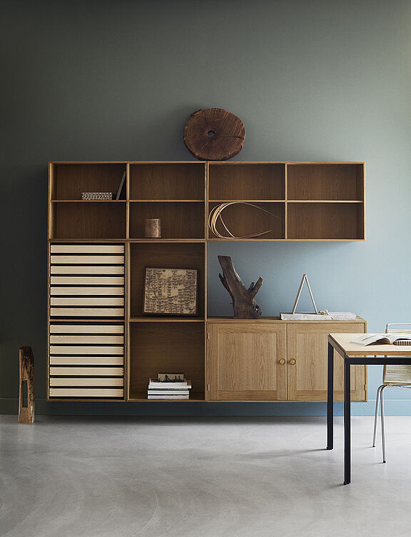 „EINFACHE DESIGNS SIND OFT BESONDERS SCHWIERIG AUSZUTÜFTELN. DAS BOOKCASE SYSTEM VON FABRICIUS UND KASTHOLM ZEIGT AUF KONGENIALE WEISE, WIE DAS DESIGNERDUO EINE BESTECHENDE EINFACHHEIT ERREICHT, OHNE KOMPROMISSE IN FUNKTIONALITÄT, HANDWERKSKUNST ODER ÄSTHETIK EINZUGEHEN. WIR FREUEN UNS DESHALB GANZ BESONDERS, FABRICIUS UND KASTHOLM IN DER KOLLEKTION VON CARL HANSEN & SON WILLKOMMEN ZU HEISSEN.
